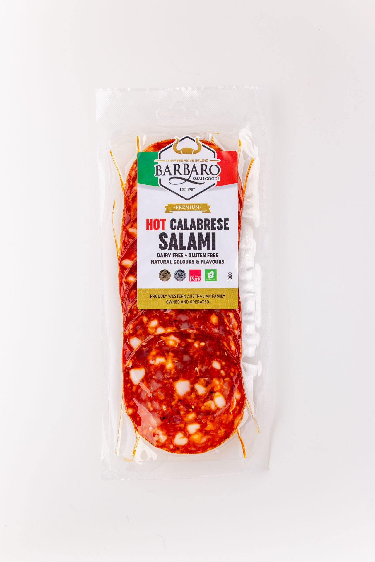 Barbaro Retail Salami Calabrese Hot Sliced 12 x 100g