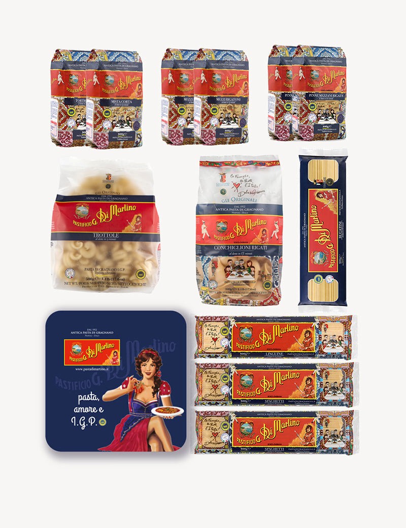 Looking for the perfect gift for real pasta lovers? This elegant tin giftbox includes a selection of the best-selling shapes of I.G.P. Gragnano pasta made with 100% Italian durum wheat